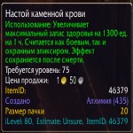Увеличивает максимальный запас здоровья на 1300 ед. на 3600 sec. Считается как боевым, так и охранным эликсиром. Эффект сохраняется после смерти.